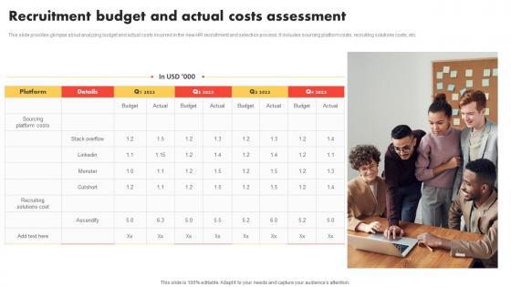 This slide provides glimpse about analyzing budget and actual costs incurred in the new HR recruitment and selection process. It includes sourcing platform costs, recruiting solutions costs, etc. Formulating a presentation can take up a lot of effort and time, so the content and message should always be the primary focus. The visuals of the PowerPoint can enhance the presenters message, so our Recruitment Budget And Actual Modern And Advanced HR Recruitment Graphics Pdf was created to help save time. Instead of worrying about the design, the presenter can concentrate on the message while our designers work on creating the ideal templates for whatever situation is needed. Slidegeeks has experts for everything from amazing designs to valuable content, we have put everything into Recruitment Budget And Actual Modern And Advanced HR Recruitment Graphics Pdf This slide provides glimpse about analyzing budget and actual costs incurred in the new HR recruitment and selection process. It includes sourcing platform costs, recruiting solutions costs, etc.