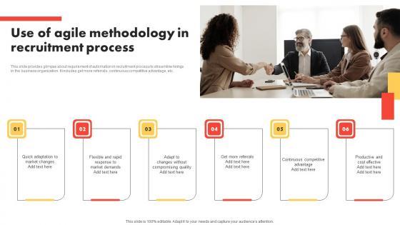 This slide provides glimpse about requirement of automation in recruitment process to streamline hirings in the business organization. It includes get more referrals, continuous competitive advantage, etc. Slidegeeks has constructed Use Of Agile Methodology In Modern And Advanced HR Recruitment Template Pdf after conducting extensive research and examination. These presentation templates are constantly being generated and modified based on user preferences and critiques from editors. Here, you will find the most attractive templates for a range of purposes while taking into account ratings and remarks from users regarding the content. This is an excellent jumping off point to explore our content and will give new users an insight into our top notch PowerPoint Templates. This slide provides glimpse about requirement of automation in recruitment process to streamline hirings in the business organization. It includes get more referrals, continuous competitive advantage, etc.