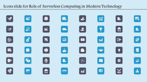 Introducing our well designed Icons Slide For Role Of Serverless Computing In Modern Technology Portrait Pdf set of slides. The slide displays editable icons to enhance your visual presentation. The icons can be edited easily. So customize according to your business to achieve a creative edge. Download and share it with your audience. Our Icons Slide For Role Of Serverless Computing In Modern Technology Portrait Pdf are topically designed to provide an attractive backdrop to any subject. Use them to look like a presentation pro.