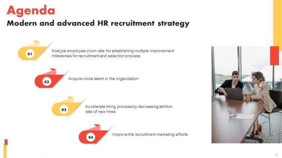 Find a pre designed and impeccable Agenda Modern And Advanced HR Recruitment Strategy Slides Pdf. The templates can ace your presentation without additional effort. You can download these easy to edit presentation templates to make your presentation stand out from others. So, what are you waiting for Download the template from Slidegeeks today and give a unique touch to your presentation. Our Agenda Modern And Advanced HR Recruitment Strategy Slides Pdf are topically designed to provide an attractive backdrop to any subject. Use them to look like a presentation pro.