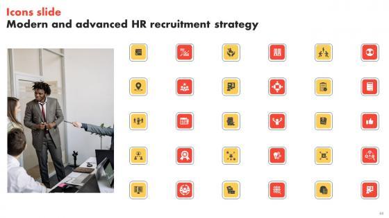 Introducing our well designed Icons Slide Modern And Advanced HR Recruitment Strategy Elements Pdf set of slides. The slide displays editable icons to enhance your visual presentation. The icons can be edited easily. So customize according to your business to achieve a creative edge. Download and share it with your audience. Our Icons Slide Modern And Advanced HR Recruitment Strategy Elements Pdf are topically designed to provide an attractive backdrop to any subject. Use them to look like a presentation pro.