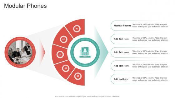 Introducing our well-designed Modular Phones In Powerpoint And Google Slides Cpb. This PowerPoint design presents information on topics like Modular Phones. As it is predesigned it helps boost your confidence level. It also makes you a better presenter because of its high-quality content and graphics. This PPT layout can be downloaded and used in different formats like PDF, PNG, and JPG. Not only this, it is available in both Standard Screen and Widescreen aspect ratios for your convenience. Therefore, click on the download button now to persuade and impress your audience. Our Modular Phones In Powerpoint And Google Slides Cpb are topically designed to provide an attractive backdrop to any subject. Use them to look like a presentation pro.