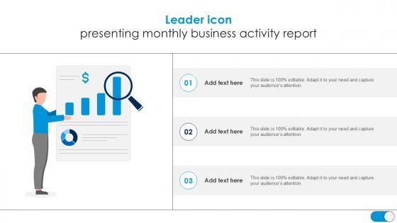 Find highly impressive Leader Icon Presenting Monthly Business Activity Report PPT Presentation SS on Slidegeeks to deliver a meaningful presentation. You can save an ample amount of time using these presentation templates. No need to worry to prepare everything from scratch because Slidegeeks experts have already done a huge research and work for you. You need to download Leader Icon Presenting Monthly Business Activity Report PPT Presentation SS for your upcoming presentation. All the presentation templates are 100 percent editable and you can change the color and personalize the content accordingly. Download now Our Leader Icon Presenting Monthly Business Activity Report PPT Presentation SS are topically designed to provide an attractive backdrop to any subject. Use them to look like a presentation pro.