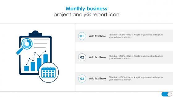 Crafting an eye-catching presentation has never been more straightforward. Let your presentation shine with this tasteful yet straightforward Monthly Business Project Analysis Report Icon PPT Sample SS template. It offers a minimalistic and classy look that is great for making a statement. The colors have been employed intelligently to add a bit of playfulness while still remaining professional. Construct the ideal Monthly Business Project Analysis Report Icon PPT Sample SS that effortlessly grabs the attention of your audience Begin now and be certain to wow your customers Our Monthly Business Project Analysis Report Icon PPT Sample SS are topically designed to provide an attractive backdrop to any subject. Use them to look like a presentation pro.