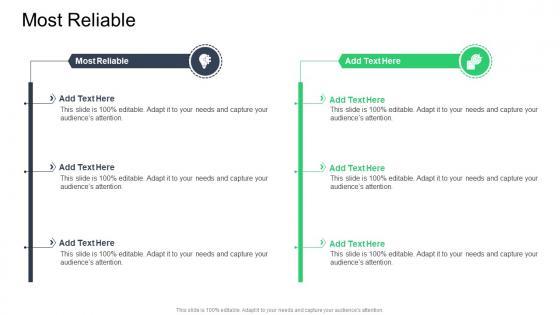 Introducing our well-designed Most Reliable In Powerpoint And Google Slides Cpb. This PowerPoint design presents information on topics like Most Reliable. As it is predesigned it helps boost your confidence level. It also makes you a better presenter because of its high-quality content and graphics. This PPT layout can be downloaded and used in different formats like PDF, PNG, and JPG. Not only this, it is available in both Standard Screen and Widescreen aspect ratios for your convenience. Therefore, click on the download button now to persuade and impress your audience. Our Most Reliable In Powerpoint And Google Slides Cpb are topically designed to provide an attractive backdrop to any subject. Use them to look like a presentation pro.