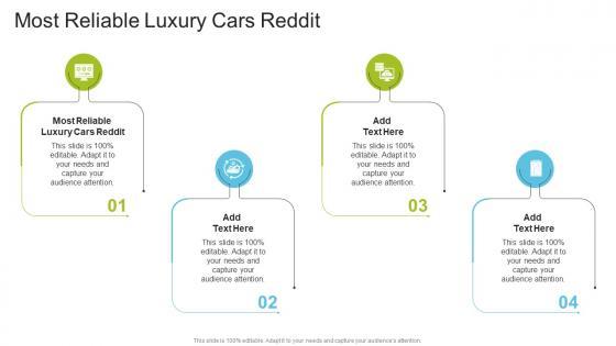 Introducing our well-designed Most Reliable Luxury Cars Reddit In Powerpoint And Google Slides Cpb. This PowerPoint design presents information on topics like Most Reliable Luxury Cars Reddit. As it is predesigned it helps boost your confidence level. It also makes you a better presenter because of its high-quality content and graphics. This PPT layout can be downloaded and used in different formats like PDF, PNG, and JPG. Not only this, it is available in both Standard Screen and Widescreen aspect ratios for your convenience. Therefore, click on the download button now to persuade and impress your audience. Our Most Reliable Luxury Cars Reddit In Powerpoint And Google Slides Cpb are topically designed to provide an attractive backdrop to any subject. Use them to look like a presentation pro.