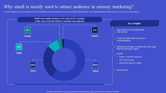 This slide represents reasons why marketers choose scent marketing is chosen by marketers as a technique to attract customer attention. It covers details regarding customer experience, sales revenue, brand identity etc. Get a simple yet stunning designed Why Smell Is Mostly Used To Attract Audience In Sensory Driven Digital Marketing Inspiration Pdf. It is the best one to establish the tone in your meetings. It is an excellent way to make your presentations highly effective. So, download this PPT today from Slidegeeks and see the positive impacts. Our easy-to-edit Why Smell Is Mostly Used To Attract Audience In Sensory Driven Digital Marketing Inspiration Pdf can be your go-to option for all upcoming conferences and meetings. So, what are you waiting for Grab this template today. This slide represents reasons why marketers choose scent marketing is chosen by marketers as a technique to attract customer attention. It covers details regarding customer experience, sales revenue, brand identity etc.
