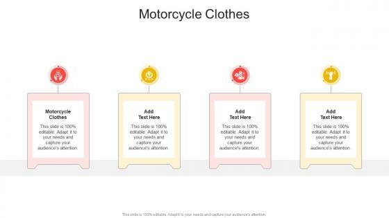 Introducing our well designed Motorcycle Clothes In Powerpoint And Google Slides Cpb. This PowerPoint design presents information on topics like Motorcycle Clothes. As it is predesigned it helps boost your confidence level. It also makes you a better presenter because of its high quality content and graphics. This PPT layout can be downloaded and used in different formats like PDF, PNG, and JPG. Not only this, it is available in both Standard Screen and Widescreen aspect ratios for your convenience. Therefore, click on the download button now to persuade and impress your audience. Our Motorcycle Clothes In Powerpoint And Google Slides Cpb are topically designed to provide an attractive backdrop to any subject. Use them to look like a presentation pro.