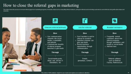 This slide covers techniques to enhance influencers role in referral marketing program. It includes strategies such checking influencers previous content, engagement rate on profile, eliminating influencers with fake followers along with action steps and impact. Present like a pro with Strategies To Improve Influencer Referral Marketing Word Of Mouth Marketing Inspiration Pdf Create beautiful presentations together with your team, using our easy-to-use presentation slides. Share your ideas in real-time and make changes on the fly by downloading our templates. So whether you are in the office, on the go, or in a remote location, you can stay in sync with your team and present your ideas with confidence. With Slidegeeks presentation got a whole lot easier. Grab these presentations today. This slide covers techniques to enhance influencers role in referral marketing program. It includes strategies such checking influencers previous content, engagement rate on profile, eliminating influencers with fake followers along with action steps and impact.