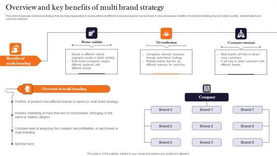 This slide showcases multi brand strategy that can help organization to build portfolio of different brand and expand market share. It also showcases benefits of multi brand strategy that are better visibility, diversification and customer retention Find a pre-designed and impeccable Overview And Key Benefits Of Multi Brand Strategy Launching New Product Brand Demonstration Pdf The templates can ace your presentation without additional effort. You can download these easy-to-edit presentation templates to make your presentation stand out from others. So, what are you waiting for Download the template from Slidegeeks today and give a unique touch to your presentation. This slide showcases multi brand strategy that can help organization to build portfolio of different brand and expand market share. It also showcases benefits of multi brand strategy that are better visibility, diversification and customer retention