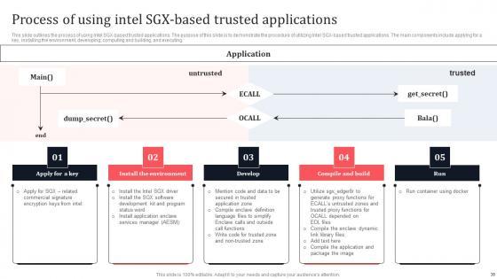 This slide describes the deployment of applications in Intel SGX with smaller TCB. The purpose of this slide is to showcase the difference between standard deployment and deployment in TEE. The main components include the operating system, virtual machine monitor, applications and hardware. Take your projects to the next level with our ultimate collection of Intel SGX With A Smaller Trusted Computing Base TCB Secure Multi Party Sample Pdf Slidegeeks has designed a range of layouts that are perfect for representing task or activity duration, keeping track of all your deadlines at a glance. Tailor these designs to your exact needs and give them a truly corporate look with your own brand colors they well make your projects stand out from the rest. This slide describes the deployment of applications in Intel SGX with smaller TCB. The purpose of this slide is to showcase the difference between standard deployment and deployment in TEE. The main components include the operating system, virtual machine monitor, applications and hardware.