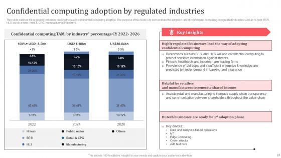 This slide outlines the regulated industries leading the way in confidential computing adoption. The purpose of this slide is to demonstrate the adoption rate of confidential computing in regulated industries such as hi-tech, BSFI, HLS, public sector, retail and CPG, manufacturing and others. Get a simple yet stunning designed Confidential Computing Adoption By Regulated Industries Secure Multi Party Professional Pdf It is the best one to establish the tone in your meetings. It is an excellent way to make your presentations highly effective. So, download this PPT today from Slidegeeks and see the positive impacts. Our easy-to-edit Confidential Computing Adoption By Regulated Industries Secure Multi Party Professional Pdf can be your go-to option for all upcoming conferences and meetings. So, what are you waiting for Grab this template today. This slide outlines the regulated industries leading the way in confidential computing adoption. The purpose of this slide is to demonstrate the adoption rate of confidential computing in regulated industries such as hi-tech, BSFI, HLS, public sector, retail and CPG, manufacturing and others.