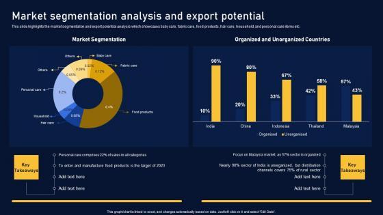 This slide highlights the market segmentation and export potential analysis which showcases baby care, fabric care, food products, hair care, household, and personal care items etc. The best PPT templates are a great way to save time, energy, and resources. Slidegeeks have 100 percent editable powerpoint slides making them incredibly versatile. With these quality presentation templates, you can create a captivating and memorable presentation by combining visually appealing slides and effectively communicating your message. Download Market Segmentation Analysis Multinational Organization Customer Goods Elements Pdf from Slidegeeks and deliver a wonderful presentation. This slide highlights the market segmentation and export potential analysis which showcases baby care, fabric care, food products, hair care, household, and personal care items etc.