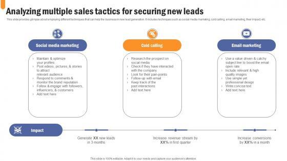This slide provides glimpse about employing different techniques that can help the business in new lead generation. It includes techniques such as social media marketing, cold calling, email marketing, their impact, etc. Slidegeeks is one of the best resources for PowerPoint templates. You can download easily and regulate Analyzing Multiple Sales Developing Extensive Sales And Operations Strategy Summary Pdf for your personal presentations from our wonderful collection. A few clicks is all it takes to discover and get the most relevant and appropriate templates. Use our Templates to add a unique zing and appeal to your presentation and meetings. All the slides are easy to edit and you can use them even for advertisement purposes. This slide provides glimpse about employing different techniques that can help the business in new lead generation. It includes techniques such as social media marketing, cold calling, email marketing, their impact, etc.