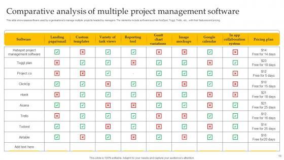 This slide showcases software used by organisations to manage multiple projects headed by managers. The elements include software such as HubSpot, Toggl, Trello, etc., with their features and pricing. Pitch your topic with ease and precision using this Comparative Analysis Of Multiple Project Management Software Structure Pdf. This layout presents information on Comparative Analysis, Project Management Software, Manage Multiple Projects. It is also available for immediate download and adjustment. So, changes can be made in the color, design, graphics or any other component to create a unique layout. This slide showcases software used by organisations to manage multiple projects headed by managers. The elements include software such as HubSpot, Toggl, Trello, etc., with their features and pricing.
