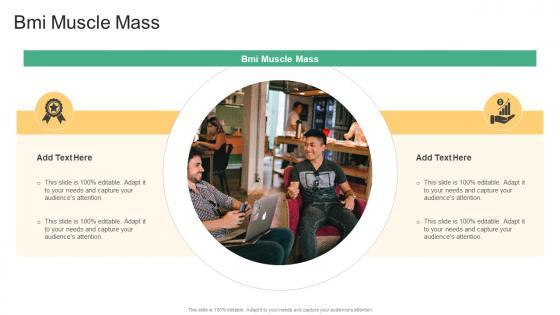 Introducing our well designed Bmi Muscle Mass In Powerpoint And Google Slides Cpb. This PowerPoint design presents information on topics like Bmi Muscle Mass. As it is predesigned it helps boost your confidence level. It also makes you a better presenter because of its high quality content and graphics. This PPT layout can be downloaded and used in different formats like PDF, PNG, and JPG. Not only this, it is available in both Standard Screen and Widescreen aspect ratios for your convenience. Therefore, click on the download button now to persuade and impress your audience. Our Bmi Muscle Mass In Powerpoint And Google Slides Cpb are topically designed to provide an attractive backdrop to any subject. Use them to look like a presentation pro.