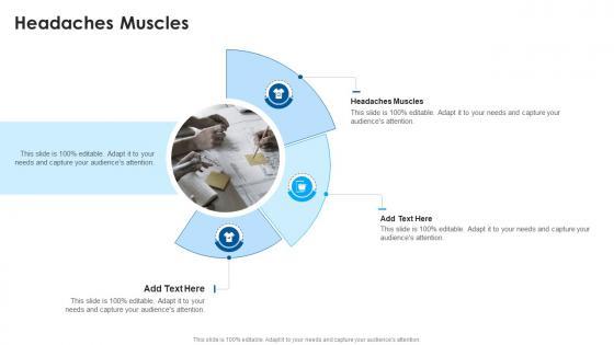 Introducing our well-designed Headaches Muscles In Powerpoint And Google Slides Cpb. This PowerPoint design presents information on topics like Headaches Muscles. As it is predesigned it helps boost your confidence level. It also makes you a better presenter because of its high-quality content and graphics. This PPT layout can be downloaded and used in different formats like PDF, PNG, and JPG. Not only this, it is available in both Standard Screen and Widescreen aspect ratios for your convenience. Therefore, click on the download button now to persuade and impress your audience. Our Headaches Muscles In Powerpoint And Google Slides Cpb are topically designed to provide an attractive backdrop to any subject. Use them to look like a presentation pro.
