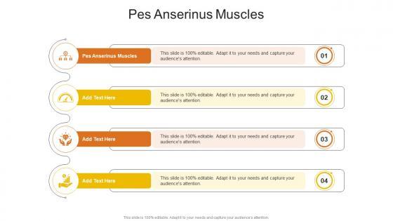 Introducing our well designed Pes Anserinus Muscles In Powerpoint And Google Slides Cpb. This PowerPoint design presents information on topics like Pes Anserinus Muscles. As it is predesigned it helps boost your confidence level. It also makes you a better presenter because of its high quality content and graphics. This PPT layout can be downloaded and used in different formats like PDF, PNG, and JPG. Not only this, it is available in both Standard Screen and Widescreen aspect ratios for your convenience. Therefore, click on the download button now to persuade and impress your audience. Our Pes Anserinus Muscles In Powerpoint And Google Slides Cpb are topically designed to provide an attractive backdrop to any subject. Use them to look like a presentation pro.