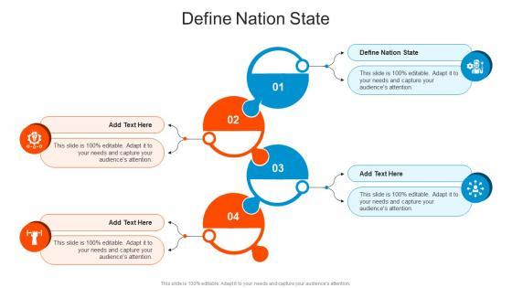 Introducing our well designed Define Nation State In Powerpoint And Google Slides Cpb. This PowerPoint design presents information on topics like Define Nation State. As it is predesigned it helps boost your confidence level. It also makes you a better presenter because of its high quality content and graphics. This PPT layout can be downloaded and used in different formats like PDF, PNG, and JPG. Not only this, it is available in both Standard Screen and Widescreen aspect ratios for your convenience. Therefore, click on the download button now to persuade and impress your audience. Our Define Nation State In Powerpoint And Google Slides Cpb are topically designed to provide an attractive backdrop to any subject. Use them to look like a presentation pro.