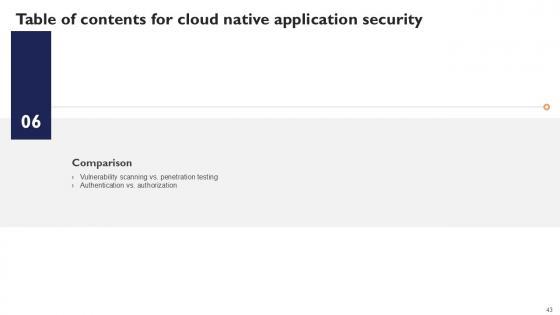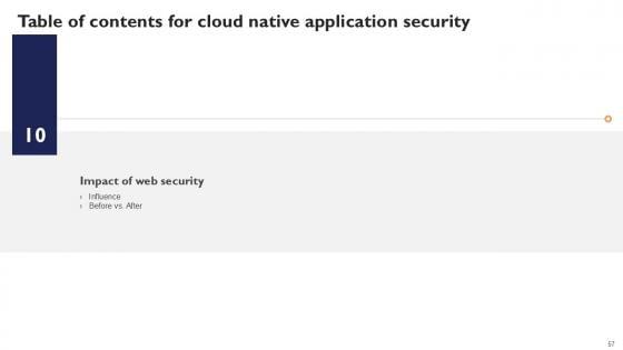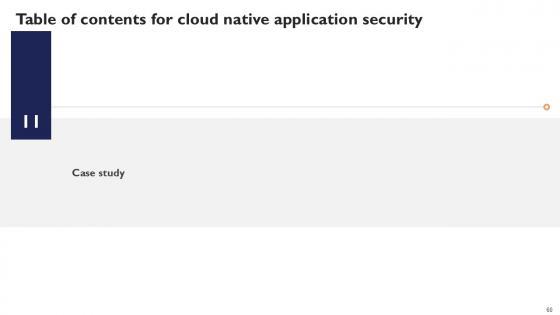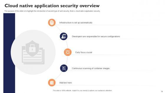 This Cloud Native Application Security PPT Template is a primer on how to capitalize on business opportunities through planning, innovation, and market intelligence. The content-ready format of the complete deck will make your job as a decision-maker a lot easier. Use this ready-made PowerPoint Template to help you outline an extensive and legible plan to capture markets and grow your company on the right path, at an exponential pace. What is even more amazing is that this presentation is completely editable and 100 percent customizable. This seventy two slide complete deck helps you impress a roomful of people with your expertise in business and even presentation. Craft such a professional and appealing presentation for that amazing recall value. Download now. Our Cloud Native Application Security PPT Template are topically designed to provide an attractive backdrop to any subject. Use them to look like a presentation pro.
