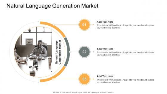 Presenting our innovatively designed set of slides titled Natural Language Generation Market In Powerpoint And Google Slides Cpb. This completely editable PowerPoint graphic exhibits Natural Language Generation Market that will help you convey the message impactfully. It can be accessed with Google Slides and is available in both standard screen and widescreen aspect ratios. Apart from this, you can download this well structured PowerPoint template design in different formats like PDF, JPG, and PNG. So, click the download button now to gain full access to this PPT design. Our Natural Language Generation Market In Powerpoint And Google Slides Cpb are topically designed to provide an attractive backdrop to any subject. Use them to look like a presentation pro.