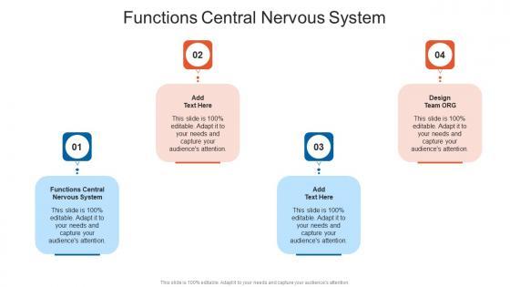 Introducing our well-designed Functions Central Nervous System In Powerpoint And Google Slides Cpb. This PowerPoint design presents information on topics like Functions Central Nervous System. As it is predesigned it helps boost your confidence level. It also makes you a better presenter because of its high-quality content and graphics. This PPT layout can be downloaded and used in different formats like PDF, PNG, and JPG. Not only this, it is available in both Standard Screen and Widescreen aspect ratios for your convenience. Therefore, click on the download button now to persuade and impress your audience. Our Functions Central Nervous System In Powerpoint And Google Slides Cpb are topically designed to provide an attractive backdrop to any subject. Use them to look like a presentation pro.