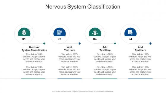 Introducing our well designed Nervous System Classification In Powerpoint And Google Slides Cpb. This PowerPoint design presents information on topics like Nervous System Classification. As it is predesigned it helps boost your confidence level. It also makes you a better presenter because of its high quality content and graphics. This PPT layout can be downloaded and used in different formats like PDF, PNG, and JPG. Not only this, it is available in both Standard Screen and Widescreen aspect ratios for your convenience. Therefore, click on the download button now to persuade and impress your audience. Our Nervous System Classification In Powerpoint And Google Slides Cpb are topically designed to provide an attractive backdrop to any subject. Use them to look like a presentation pro.