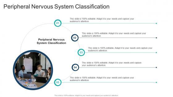 Presenting our innovatively designed set of slides titled Peripheral Nervous System Classification In Powerpoint And Google Slides Cpb. This completely editable PowerPoint graphic exhibits Peripheral Nervous System Classification that will help you convey the message impactfully. It can be accessed with Google Slides and is available in both standard screen and widescreen aspect ratios. Apart from this, you can download this well structured PowerPoint template design in different formats like PDF, JPG, and PNG. So, click the download button now to gain full access to this PPT design. Our Peripheral Nervous System Classification In Powerpoint And Google Slides Cpb are topically designed to provide an attractive backdrop to any subject. Use them to look like a presentation pro.