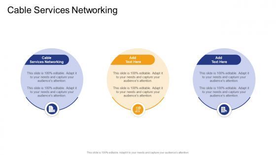 Introducing our well designed Cable Services Networking In Powerpoint And Google Slides Cpb. This PowerPoint design presents information on topics like Cable Services Networking. As it is predesigned it helps boost your confidence level. It also makes you a better presenter because of its high quality content and graphics. This PPT layout can be downloaded and used in different formats like PDF, PNG, and JPG. Not only this, it is available in both Standard Screen and Widescreen aspect ratios for your convenience. Therefore, click on the download button now to persuade and impress your audience. Our Cable Services Networking In Powerpoint And Google Slides Cpb are topically designed to provide an attractive backdrop to any subject. Use them to look like a presentation pro.
