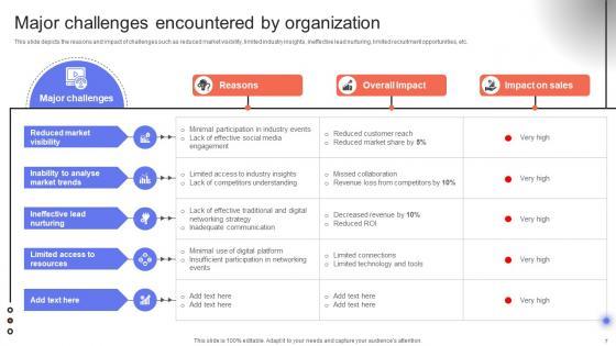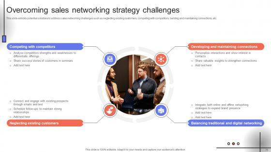 This slide exhibits potential solutions to address sales networking challenges such as neglecting existing customers, competing with competitors, building and maintaining connections, etc. Find a pre-designed and impeccable Trade Event Tactics To Boost Overcoming Sales Networking Strategy Challenges SA SS V. The templates can ace your presentation without additional effort. You can download these easy-to-edit presentation templates to make your presentation stand out from others. So, what are you waiting for Download the template from Slidegeeks today and give a unique touch to your presentation. This slide exhibits potential solutions to address sales networking challenges such as neglecting existing customers, competing with competitors, building and maintaining connections, etc.