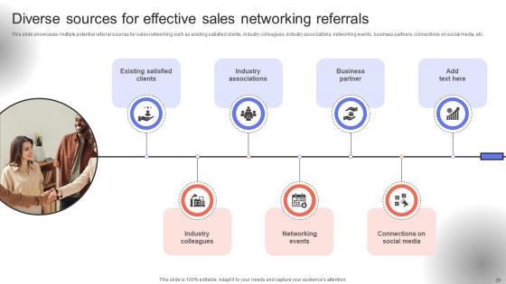 This slide showcases multiple potential referral sources for sales networking such as existing satisfied clients, industry colleagues, industry associations, networking events, business partners, connections on social media, etc. Find highly impressive Trade Event Tactics To Boost Diverse Sources For Effective Sales Networking Referrals SA SS V on Slidegeeks to deliver a meaningful presentation. You can save an ample amount of time using these presentation templates. No need to worry to prepare everything from scratch because Slidegeeks experts have already done a huge research and work for you. You need to download Trade Event Tactics To Boost Diverse Sources For Effective Sales Networking Referrals SA SS V for your upcoming presentation. All the presentation templates are 100 percent editable and you can change the color and personalize the content accordingly. Download now This slide showcases multiple potential referral sources for sales networking such as existing satisfied clients, industry colleagues, industry associations, networking events, business partners, connections on social media, etc.
