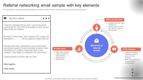 This slide exhibits a referral networking sample with key elements to build trust such as warm introduction, brief message, and provide value. Get a simple yet stunning designed Trade Event Tactics To Boost Referral Networking Email Sample With Key Elements SA SS V. It is the best one to establish the tone in your meetings. It is an excellent way to make your presentations highly effective. So, download this PPT today from Slidegeeks and see the positive impacts. Our easy-to-edit Trade Event Tactics To Boost Referral Networking Email Sample With Key Elements SA SS V can be your go-to option for all upcoming conferences and meetings. So, what are you waiting for Grab this template today. This slide exhibits a referral networking sample with key elements to build trust such as warm introduction, brief message, and provide value.