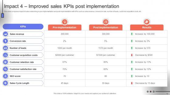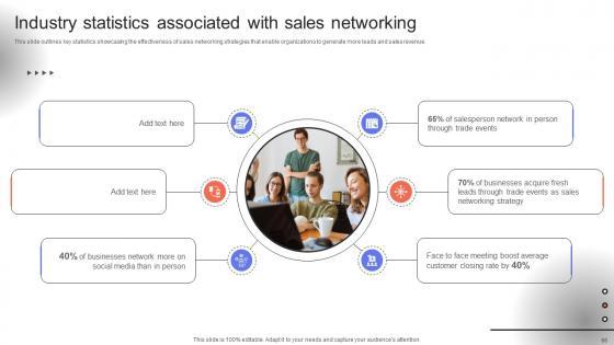 This slide outlines key statistics showcasing the effectiveness of sales networking strategies that enable organizations to generate more leads and sales revenue. Retrieve professionally designed Trade Event Tactics To Boost Industry Statistics Associated With Sales Networking SA SS V to effectively convey your message and captivate your listeners. Save time by selecting pre-made slideshows that are appropriate for various topics, from business to educational purposes. These themes come in many different styles, from creative to corporate, and all of them are easily adjustable and can be edited quickly. Access them as PowerPoint templates or as Google Slides themes. You do not have to go on a hunt for the perfect presentation because Slidegeeks got you covered from everywhere. This slide outlines key statistics showcasing the effectiveness of sales networking strategies that enable organizations to generate more leads and sales revenue.