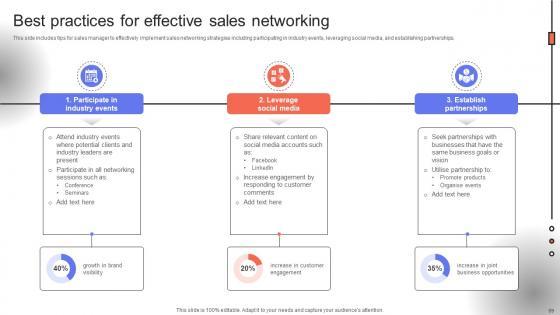 This side includes tips for sales manager to effectively implement sales networking strategies including participating in industry events, leveraging social media, and establishing partnerships. There are so many reasons you need a Trade Event Tactics To Boost Best Practices For Effective Sales Networking SA SS V. The first reason is you can not spend time making everything from scratch, Thus, Slidegeeks has made presentation templates for you too. You can easily download these templates from our website easily. This side includes tips for sales manager to effectively implement sales networking strategies including participating in industry events, leveraging social media, and establishing partnerships.