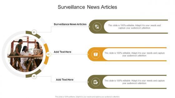 Introducing our well designed Surveillance News Articles In Powerpoint And Google Slides Cpb. This PowerPoint design presents information on topics like Surveillance News Articles. As it is predesigned it helps boost your confidence level. It also makes you a better presenter because of its high quality content and graphics. This PPT layout can be downloaded and used in different formats like PDF, PNG, and JPG. Not only this, it is available in both Standard Screen and Widescreen aspect ratios for your convenience. Therefore, click on the download button now to persuade and impress your audience. Our Surveillance News Articles In Powerpoint And Google Slides Cpb are topically designed to provide an attractive backdrop to any subject. Use them to look like a presentation pro.