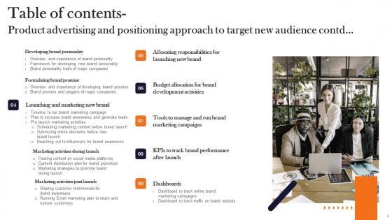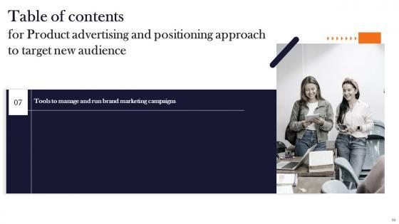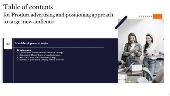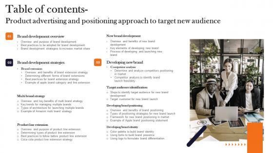 Do you have an important presentation coming up Are you looking for something that will make your presentation stand out from the rest Look no further than Table Of Contents Product Advertising And Positioning Approach To Target New Audience Rules Pdf. With our professional designs, you can trust that your presentation will pop and make delivering it a smooth process. And with Slidegeeks, you can trust that your presentation will be unique and memorable. So why wait Grab Table Of Contents Product Advertising And Positioning Approach To Target New Audience Rules Pdf today and make your presentation stand out from the rest Our Table Of Contents Product Advertising And Positioning Approach To Target New Audience Rules Pdf are topically designed to provide an attractive backdrop to any subject. Use them to look like a presentation pro.