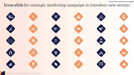 Help your business to create an attention-grabbing presentation using our Icons Slide For Strategic Marketing Campaign To Introduce New Service Infographics Pdf set of slides. The slide contains innovative icons that can be flexibly edited. Choose this Icons Slide For Strategic Marketing Campaign To Introduce New Service Infographics Pdf template to create a satisfactory experience for your customers. Go ahead and click the download button. Our Icons Slide For Strategic Marketing Campaign To Introduce New Service Infographics Pdf are topically designed to provide an attractive backdrop to any subject. Use them to look like a presentation pro.