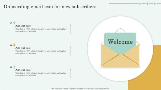 Pitch your topic with ease and precision using this Onboarding Email Icon For New Subscribers Sample Pdf. This layout presents information on Onboarding Email Icon, New Subscribers. It is also available for immediate download and adjustment. So, changes can be made in the color, design, graphics or any other component to create a unique layout. Our Onboarding Email Icon For New Subscribers Sample Pdf are topically designed to provide an attractive backdrop to any subject. Use them to look like a presentation pro.