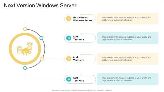 Introducing our well-designed Next Version Windows Server In Powerpoint And Google Slides Cpb. This PowerPoint design presents information on topics like Networking Membership. As it is predesigned it helps boost your confidence level. It also makes you a better presenter because of its high-quality content and graphics. This PPT layout can be downloaded and used in different formats like PDF, PNG, and JPG. Not only this, it is available in both Standard Screen and Widescreen aspect ratios for your convenience. Therefore, click on the download button now to persuade and impress your audience. Our Next Version Windows Server In Powerpoint And Google Slides Cpb are topically designed to provide an attractive backdrop to any subject. Use them to look like a presentation pro.