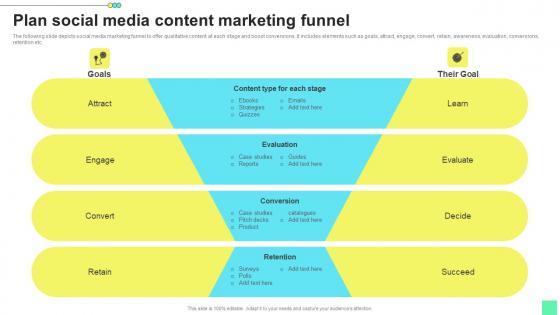 The following slide depicts social media marketing funnel to offer qualitative content at each stage and boost conversions. It includes elements such as goals, attract, engage, convert, retain, awareness, evaluation, conversions, retention etc. Slidegeeks is here to make your presentations a breeze with Plan Social Media Content Marketing Introduction To Niche Marketing Audience Segmentation Microsoft Pdf With our easy to use and customizable templates, you can focus on delivering your ideas rather than worrying about formatting. With a variety of designs to choose from, you are sure to find one that suits your needs. And with animations and unique photos, illustrations, and fonts, you can make your presentation pop. So whether you are giving a sales pitch or presenting to the board, make sure to check out Slidegeeks first The following slide depicts social media marketing funnel to offer qualitative content at each stage and boost conversions. It includes elements such as goals, attract, engage, convert, retain, awareness, evaluation, conversions, retention etc.