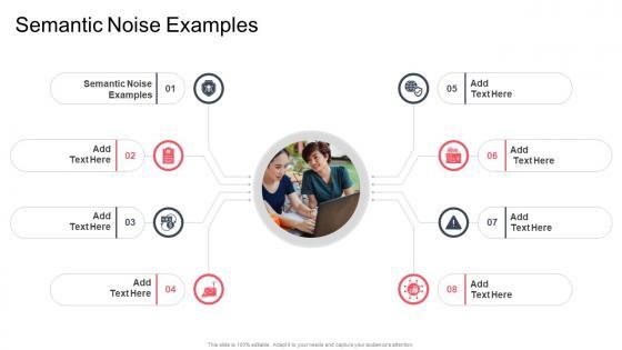 Introducing our well designed Semantic Noise Examples In Powerpoint And Google Slides Cpb. This PowerPoint design presents information on topics like Semantic Noise Examples. As it is predesigned it helps boost your confidence level. It also makes you a better presenter because of its high quality content and graphics. This PPT layout can be downloaded and used in different formats like PDF, PNG, and JPG. Not only this, it is available in both Standard Screen and Widescreen aspect ratios for your convenience. Therefore, click on the download button now to persuade and impress your audience. Our Semantic Noise Examples In Powerpoint And Google Slides Cpb are topically designed to provide an attractive backdrop to any subject. Use them to look like a presentation pro.