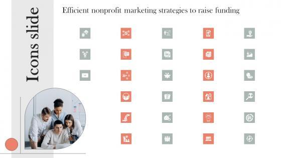 Introducing our well designed Icons Slide Efficient Nonprofit Marketing Strategies To Raise Funding Designs Pdf set of slides. The slide displays editable icons to enhance your visual presentation. The icons can be edited easily. So customize according to your business to achieve a creative edge. Download and share it with your audience. Our Icons Slide Efficient Nonprofit Marketing Strategies To Raise Funding Designs Pdf are topically designed to provide an attractive backdrop to any subject. Use them to look like a presentation pro.