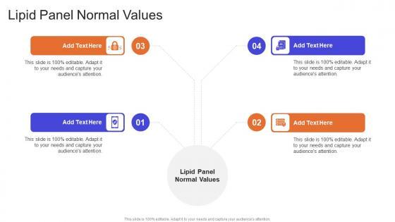 Introducing our well designed Lipid Panel Normal Values In Powerpoint And Google Slides Cpb. This PowerPoint design presents information on topics like Lipid Panel Normal Values. As it is predesigned it helps boost your confidence level. It also makes you a better presenter because of its high quality content and graphics. This PPT layout can be downloaded and used in different formats like PDF, PNG, and JPG. Not only this, it is available in both Standard Screen and Widescreen aspect ratios for your convenience. Therefore, click on the download button now to persuade and impress your audience. Our Lipid Panel Normal Values In Powerpoint And Google Slides Cpb are topically designed to provide an attractive backdrop to any subject. Use them to look like a presentation pro.