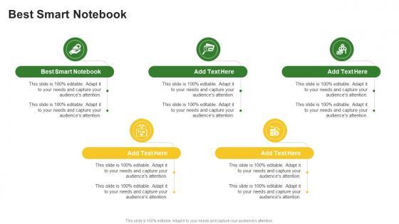 Introducing our well-designed Best Smart Notebook In Powerpoint And Google Slides Cpb. This PowerPoint design presents information on topics like Best Smart Notebook. As it is predesigned it helps boost your confidence level. It also makes you a better presenter because of its high-quality content and graphics. This PPT layout can be downloaded and used in different formats like PDF, PNG, and JPG. Not only this, it is available in both Standard Screen and Widescreen aspect ratios for your convenience. Therefore, click on the download button now to persuade and impress your audience. Our Best Smart Notebook In Powerpoint And Google Slides Cpb are topically designed to provide an attractive backdrop to any subject. Use them to look like a presentation pro.