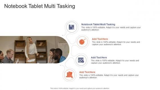Introducing our well designed Notebook Tablet Multi Tasking In Powerpoint And Google Slides Cpb. This PowerPoint design presents information on topics like Notebook Tablet Multi Tasking. As it is predesigned it helps boost your confidence level. It also makes you a better presenter because of its high quality content and graphics. This PPT layout can be downloaded and used in different formats like PDF, PNG, and JPG. Not only this, it is available in both Standard Screen and Widescreen aspect ratios for your convenience. Therefore, click on the download button now to persuade and impress your audience. Our Notebook Tablet Multi Tasking In Powerpoint And Google Slides Cpb are topically designed to provide an attractive backdrop to any subject. Use them to look like a presentation pro.