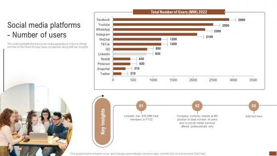 The slide highlights the top social media applications in terms of total number of members for user base comparison along with key insights. The Business Connection Network Company Outline Social Media Platforms Number Of Users Download PDF is a compilation of the most recent design trends as a series of slides. It is suitable for any subject or industry presentation, containing attractive visuals and photo spots for businesses to clearly express their messages. This template contains a variety of slides for the user to input data, such as structures to contrast two elements, bullet points, and slides for written information. Slidegeeks is prepared to create an impression.
