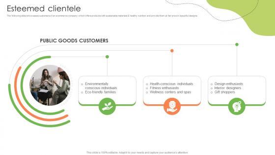 The following slide showcases customers of an ecommerce company which offers products with sustainable materials and healthy nutrition and provide them at fair price in beautiful designs. Do you have to make sure that everyone on your team knows about any specific topic I yes, then you should give Esteemed Clientele Healthy And Nutrition Provider Company Investor Funding Elevator Pitch Deck a try. Our experts have put a lot of knowledge and effort into creating this impeccable Esteemed Clientele Healthy And Nutrition Provider Company Investor Funding Elevator Pitch Deck. You can use this template for your upcoming presentations, as the slides are perfect to represent even the tiniest detail. You can download these templates from the Slidegeeks website and these are easy to edit. So grab these today The following slide showcases customers of an ecommerce company which offers products with sustainable materials and healthy nutrition and provide them at fair price in beautiful designs.