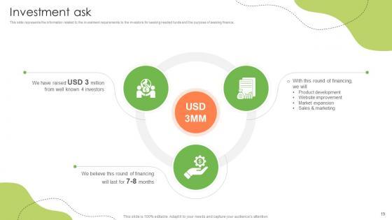 This slide represents the information related to the investment requirements to the investors for seeking needed funds and the purpose of seeking finance. Find highly impressive Investment Ask Healthy And Nutrition Provider Company Investor Funding Elevator Pitch Deck on Slidegeeks to deliver a meaningful presentation. You can save an ample amount of time using these presentation templates. No need to worry to prepare everything from scratch because Slidegeeks experts have already done a huge research and work for you. You need to download Investment Ask Healthy And Nutrition Provider Company Investor Funding Elevator Pitch Deck for your upcoming presentation. All the presentation templates are 100 percent editable and you can change the color and personalize the content accordingly. Download now This slide represents the information related to the investment requirements to the investors for seeking needed funds and the purpose of seeking finance.