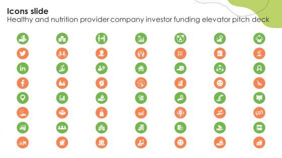 Whether you have daily or monthly meetings, a brilliant presentation is necessary. Icons Slide Healthy And Nutrition Provider Company Investor Funding Elevator Pitch Deck can be your best option for delivering a presentation. Represent everything in detail using Icons Slide Healthy And Nutrition Provider Company Investor Funding Elevator Pitch Deck and make yourself stand out in meetings. The template is versatile and follows a structure that will cater to your requirements. All the templates prepared by Slidegeeks are easy to download and edit. Our research experts have taken care of the corporate themes as well. So, give it a try and see the results. Our Icons Slide Healthy And Nutrition Provider Company Investor Funding Elevator Pitch Deck are topically designed to provide an attractive backdrop to any subject. Use them to look like a presentation pro.