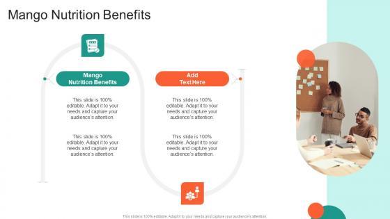 Presenting our innovatively designed set of slides titled Mango Nutrition Benefits In Powerpoint And Google Slides Cpb. This completely editable PowerPoint graphic exhibits Mango Nutrition Benefits that will help you convey the message impactfully. It can be accessed with Google Slides and is available in both standard screen and widescreen aspect ratios. Apart from this, you can download this well-structured PowerPoint template design in different formats like PDF, JPG, and PNG. So, click the download button now to gain full access to this PPT design. Our Mango Nutrition Benefits In Powerpoint And Google Slides Cpb are topically designed to provide an attractive backdrop to any subject. Use them to look like a presentation pro.